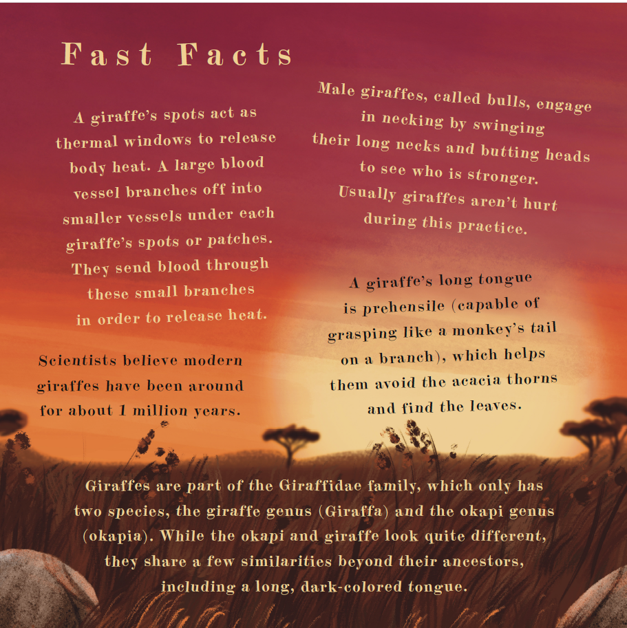 15 Fantastic Giraffe Facts for Kids. Toucan Box. Retrieved from https://www.toucanbox.com/facts-for-kids/giraffe-facts